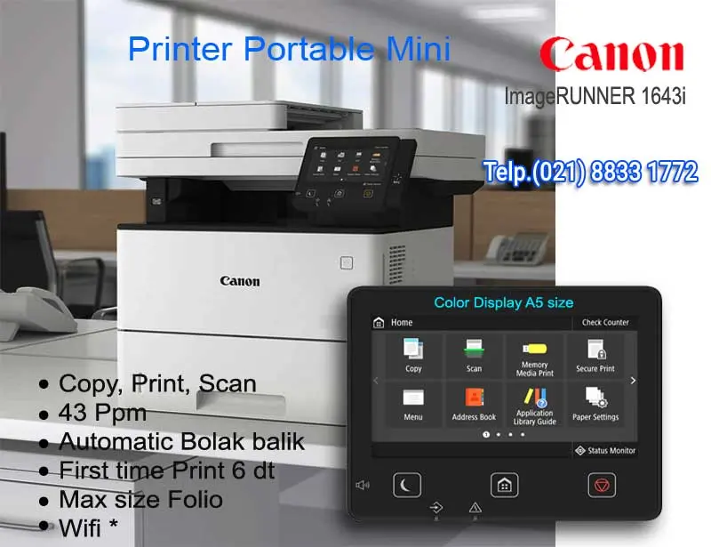 Canon ImageRUNNER 1643i, printer yang cocok untuk Perkantoran ataupun lembaga yang membutuhkan mesin baru, dengan Print up to 43 ppm.